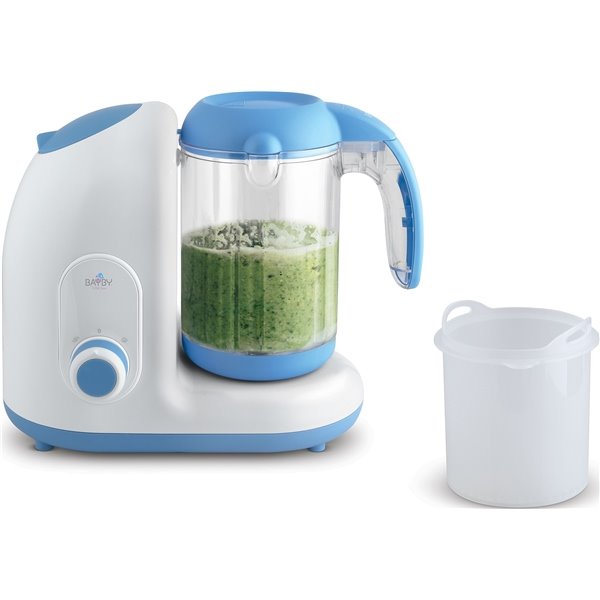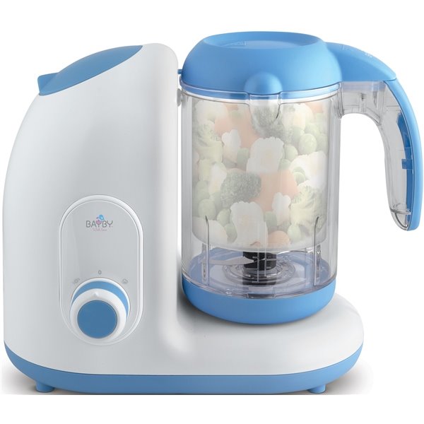 Prístroj Bayby vám uľahčí starostlivosť o dieťa a jeho kŕmenie. Je vybavený nádobou s objemom 200 ml, do ktorej nalejete vodu alebo vložíte suroviny na prípravu domáceho detského pokrmu. Nájdete na nej merný ukazovateľ, aby ste vždy vedeli, aké množstvo ste do nej dali.
