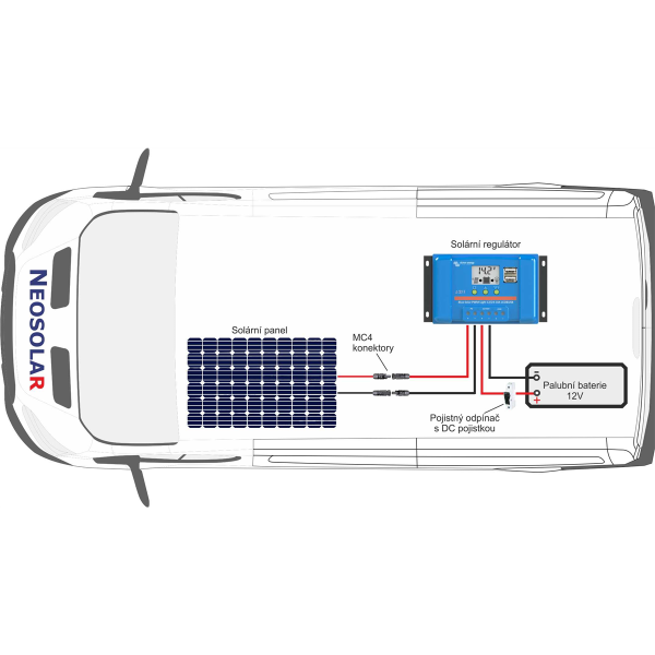 Nechcete platit vysoké poplatky za elektrickou přípojku v kempu, nebo potřebujete energii kdykoliv a kdekoliv mimo civilizaci? Využijte zcela jednoduše solární energii pro nabíjení palubní baterie ve Vašem karavanu/obytném vozu. Nabízíme Vám optimálně navržený solární systém 260 Wp pro karavany a obytné vozy s 5ti letou zárukou na solární panely a solární regulátor. Tento systém pracuje s napětím baterie 12V. Jedná se o jeden z nejčastěji prodávaných a používaných solárních systémů naší nabídky. Solární systém obsahuje tyto komponenty: 2x Solární panel Victron Energy 130Wp/12V (rozměry 1200x668x30mm) 1x PWM solární regulátor Victron Energy LCDandUSB 20A 1x Sada kabelů 6mm2 vč. nalisovaných konektorů MC4 - délka 15 m 1x Slučovací konektror MC4-párTato sestava neobsahuje baterii. Pokud v karavanu palubní baterii nemáte, doporučujeme zvolit baterii uzavřeného typu AGM, GEL, nebo LiFePo ze sekce solární baterie. Rádi Vám pomůžeme se správným výběrem.Kolik energie dokáže průměrně vyrobit tento solární systém 260Wp při optimálním oslunění v ČR? jaro cca 655 Wh/den léto cca 904 Wh/den podzim cca 655 Wh/den zima cca 136 Wh/denUchycení panelů na střechu obytného auta doporučujeme pomocí léty ověřené sady držáků 68cm (nejsou v ceně sestavy), kterou naleznete ve stejné sekci jako tuto sestavu. K dispozici je také vodotěsná průchodka pro dva kabely vedoucí od panelu a vhodné lepidlo.Solární regulátor Victron Energy LCDandUSB 20A se stará o zcela bezobslužný chod tohoto systému, má přehledný integrovaný LCD displej. Ten Vám poskytne zajímavé informace o chodu celého systému. Přímo na čelní straně solárního regulátoru naleznete také dva USB výstupy vhodné např. pro nabíjení mobilních telefonů. Po instalaci vyberete jeden ze čtyř přednastavených typů baterie: AGM, GEL, kapalinová nebo LiFePO4UPOZORNĚNÍ:Sestava obsahuje kabel 6mm2 dlouhý 15m, na koncích kabelu jsou nalisovány konektory MC4 sloužící pro připojení k solárnímu panelu. Instalující elektrikář dovybaví konce kabelů vedoucích do solárního regulátoru dutinkami a vhodným DC jištěním. U baterie kabel zakončí vhodnými oky a vhodným DC jištěním dle typu baterie a podmínek instalace.Potřebujete další komponenty systému:Rádi Vám poradíme při výběru vhodného typu baterie, vhodného měniče napětí 12DC/230AC. V naší nabídce také naleznete produkty potřebné pro nabíjení z alternátoru za jízdy. Jak vybrat správný solární systém?Spotřebu jednotlivých přístrojů napájených solárním systémem ve Wattech vynásobíme počtem hodin předpokládaného provozu za den. Výsledkem bude celková potřeba Wh (watthodin) za den. Pokud bude toto číslo nižší než uvedené hodnoty pro jednotlivé roční období, výkon systému je dostačující, v opačném případě je nutno zvolit výkonnější systém. Pokud si nejste jisti, který systém zvolit, kontaktujte nás, rádi Vám poradíme. Pokud Vám jakákoli komponenta solárního systému svými parametry nevyhovuje, rádi jí vyměníme za jinou nebo zcela vyjmeme s odpovídající úpravou ceny. Pro tuto úpravu nás prosím kontaktujte, nebo skutečnost uveďte do poznámky v objednávce. Spolu se solárním systémem dostanete podrobný návod s popisem jednotlivých komponent a schéma zapojení. .