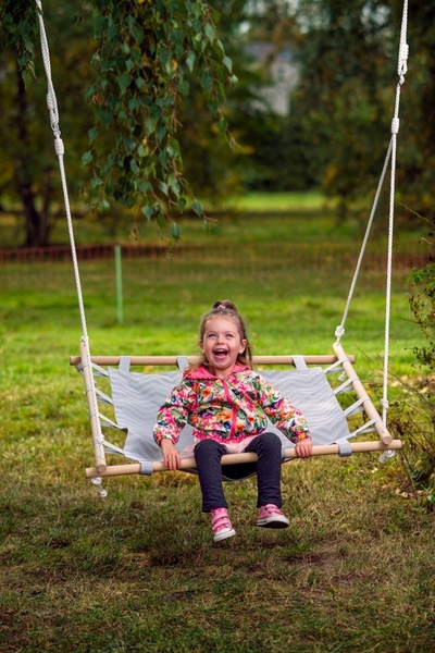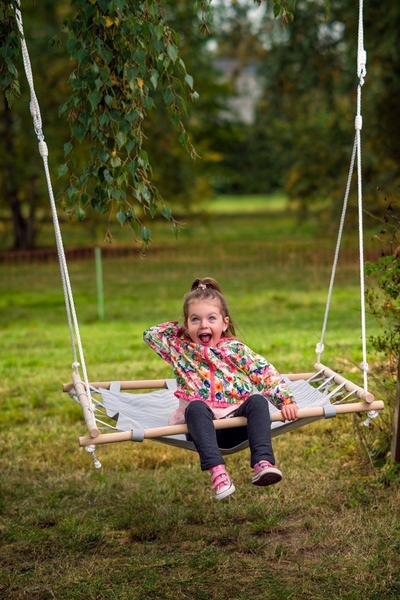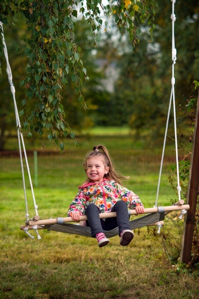 Hojdací štvorec značky Woody má drevený rám vyplnený pogumovanou textíliou, čo len zvyšuje odolnosť voči vplyvom počasia. Deti sa môžu na hojdačke hojdať alebo len ležať a relaxovať. Jednoduchý sofistikovaný dizajn zaručuje, že hojdačka nebude rušivým prvkom pre vašu záhradu a interiér.