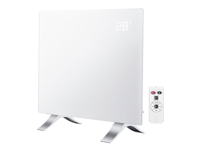 Výrobok sa vyznačuje moderným a elegantným dizajnom. Bol vyrobený z tvrdeného skla s vysokou pevnosťou. Hliníkový vykurovací systém novej generácie, pracuje bez hluku, zápachu, plynu alebo dymu. Teplo je cítiť ihneď po zapnutí konvektora. Dotykový LED displej je jednoduchý a intuitívny. Jednotka je vybavená presným termostatom s reguláciou teploty v rozsahu 5-45 °C. Diaľkové ovládanie uľahčuje programovanie prevádzkového režimu. Týždenný program v zariadení je možné ovládať ako diaľkovým ovládačom, tak dotykovým panelom. Ohrievač má ochranu proti prehriatiu, ochranu proti prevráteniu a ochranu pred deťmi, čo ovplyvňuje bezpečné používanie. Výrobok disponuje funkciou proti zamrznutiu pre udržanie minimálnej teploty v miestnosti a funkciou detekcie otvorených okien. Ohrievač je možné postaviť na podlahu alebo namontovať na stenu - hliníkové nohy a súprava na montáž na stenu sú súčasťou balenia. Tento výrobok je vhodný iba na príležitostné použitie alebo na použitie v dobre izolovaných miestnostiach.