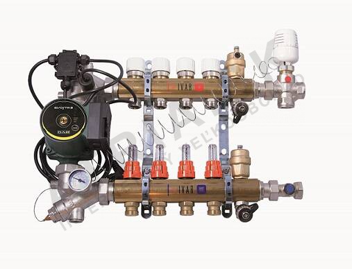 Vypínanie obehového čerpadla nie je súčasťou rozdeľovača, je možné ho riešiť nadradenou reguláciou alebo ovládacím termostatom pre obehové čerpadlá IVAR.AC 614 E.