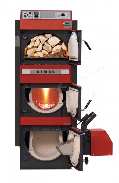 Kotol je skonštruovaný ako teleso s tromi nad sebou posadenými komorami. Vrchné dve komory slúžia k splyňovaniu dreva, tak ako pri klasických splyňovacích kotloch. Tretia, najspodnejšia komora je spredu osadená požadovaným horákom a vyložená keramikou pre optimálnu kvalitu spaľovania. Spaľovacie systémy sú od seba oddelené vodným plášťom, tým pádom sa navzájom príliš neovplyvňujú, a tým kotol dosahuje vysokú účinnosť pri kúrení jednotlivými palivami. Odvod spalín do komína je riešený výstupným hrdlom, a preto si vystačíme s jedným komínom.