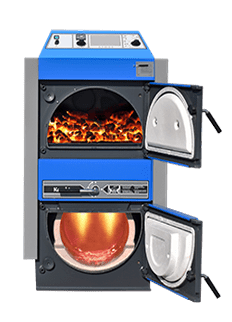 – 18 kW splyňovací kotol na hnedouhoľné brikety, čierne uhlie a drevo– KOMBI s odťahovým ventilátorom a s chladiacou slučkou