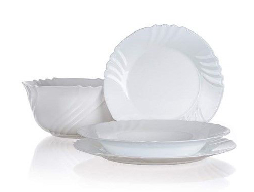 - Obsahuje: 6 × dezertný tanier 20 cm, 6 × plytký tanier 25,5 cm, 6 × hlboký tanier 23,5 cm, 1 × misa 23 cm - Luxusné sklenené riady - Odolné voči tepelnému šoku - Vhodné do mikrovlnnej rúry - Je možné umývať v umývačke - Materiál: Sklo - Počet kusov v balení: 19 - Farba: Bílávv