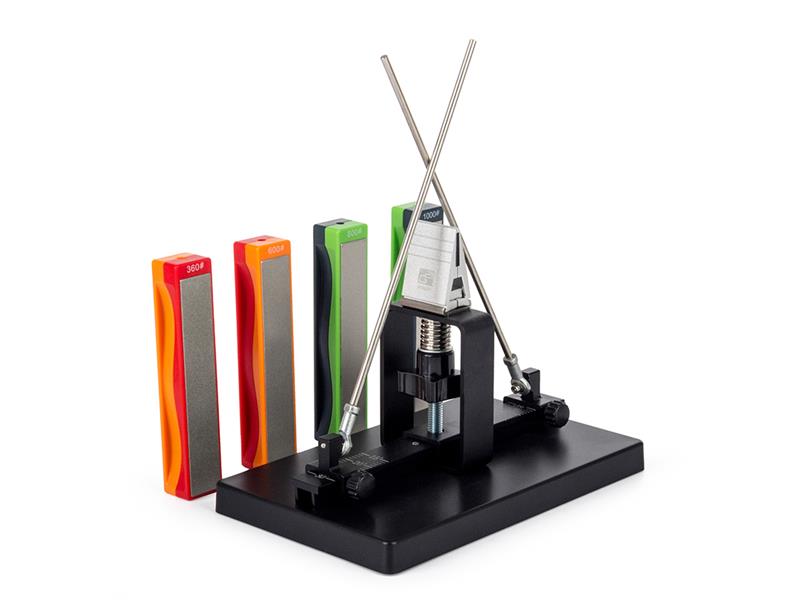 - Základňa na brúsenie nožov s unikátnou upínacou svorkou - Lišta so stupnicou pre presné nastavenie brúsnych uhlov - 4 brúsne bloky s diamantovým povrchom so zrnitosťou #360, #600, #800 a #1000 - Praktický kufrík pre bezpečné prenášanie a ukladanie sady