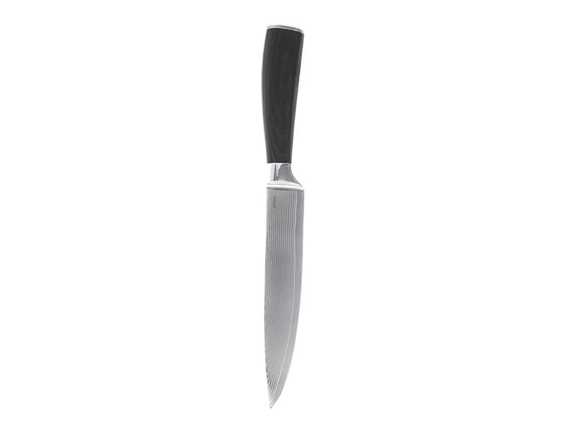 Kuchynský nôž z damaškovej ocele nielen na profesionálne využitie sa hodí pre amatérskych kuchárov, domácich gurmánov i labužníkov. Univerzálne využitie v kuchyni. Čepeľ je vyrobená z kvalitnej 67-vrstvovej damaškovej ocele vzniknutej z dvoch rôznych ocelí, ktoré sú zahrievaním spojené do jedného celku. Damasková oceľ je tvrdá, odolná voči opotrebovaniu, vysoko stabilná a má dlhú životnosť. Krájanie je presné a dokonalé. V prípade nutnosti nabrúsenia ostrie použite kuchynský brúsik, ocieľku. Rukoväť noža je vyrobená z pakka dreva (pakkawood) – tlakovo spracovaného kompozitu dreva a živice, ktorý je stabilný, tepelne a vlhkostne odolný aj voči mechanickému opotrebovaniu.