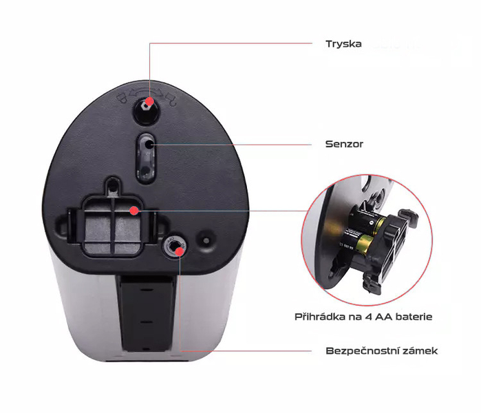 Upozornenie: Pre správnu funkčnosť automatického dávkovača používajte iba výrobcom stanovené napájacie batérie. Nepoužívajte nealkalické a nabíjacie batérie, pretože u tohto typu dochádza k jeho rýchlemu samo-vybíjaniu.