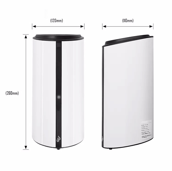 Automatický dávkovač DROP Gél je dostupný v dvoch farebných prevedeniach, bielej a striebornej farbe. Telo prístroja je vyrobené z odolného ABS plastu.