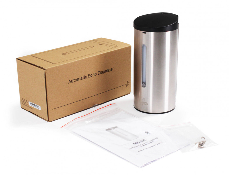 Automatický dávkovač penového mydla je dostupný v bielej povrchovej úprave a matnom nereze. Telo prístroja je vyrobené z kvalitnej nerezovej ocele. Použité materiály zaisťujú dlhú životnosť a mechanickú odolnosť.