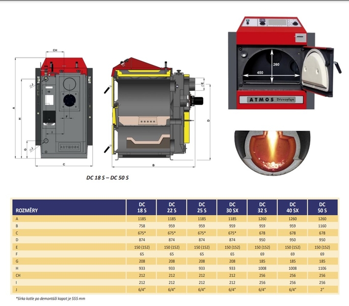 Pozn.: Tento typ kotla je možné zakúpiť aj vo verzii so zabudovanou ekvitermickou reguláciou ACD04 s dotykovým displejom ATMOS DC32S REG, alebo aj vo verzii s automatickým zapaľovaním a elektronickou reguláciou AC32, kotol ATMOS DC32S ZAP