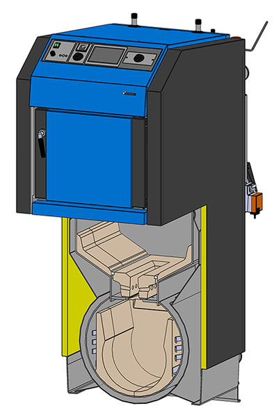 Teleso kotlov je vyrobené ako zvarenec z kvalitných oceľových plechov o hrúbke 3 až 8 mm. Tvorí ich násypka paliva (6 mm), ktorá je v spodnej časti opatrená splyňovaciou tryskou s pozdĺžnym otvorom pre priechod spalín a plynov. Dohorievací priestor pod ňou je vybavený keramickými tvarovkami pre ideálne vyhorenie všetkých spáliteľných látok s vysokou účinnosťou pri ekologicky šetrnom spaľovaní. V zadnej časti telesa kotla je zvislý spalinový kanál, ktorý je vo vrchnej časti vybavený rozkurovaciou záklopkou. Vrchná časť spalinového kanála je vybavená odťahovým hrdlom pre pripojenie na komín.