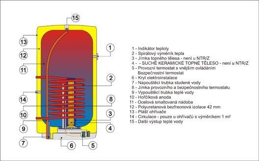 - Ohrievač vody s nepriamym ohrevom s rúrkovým špirálovým výmeníkom tepla - ohrev z externého zdroja tepla