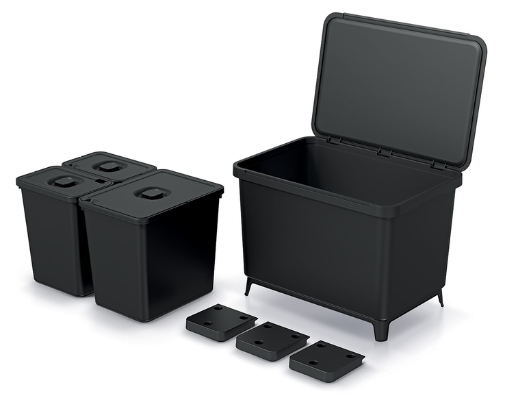 Šetrite našu planétu. Odpadkový kôš Prosperplast SYSTEMA vám uľahčí triedenie odpadu. Obsahuje totiž 3 nádoby s odlišným farebným označením – žltá na plast, modrá na papier a zelená na sklo. Záleží však na vás, či sa farieb budete držať. Nádoby majú aj rôzne objemy. Konkrétne 2 nádoby majú každá 10 litrov, a 1 nádoba 23 litrov. Vďaka rozmerným vnútorným boxom vzniká dostatok miesta na všetky odpadky. Akonáhle koše naplníte, ľahko ich obsah vynesiete do smetiaka s pomocou plastového ucha pre lepšie držanie.