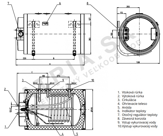 - kombinovaný horizontálny závesný ohrievač vody s rúrkovým výmenníkom tepla 0,6 m2