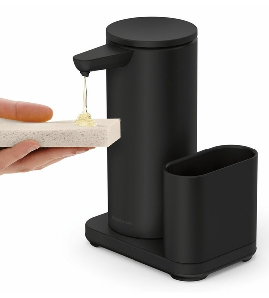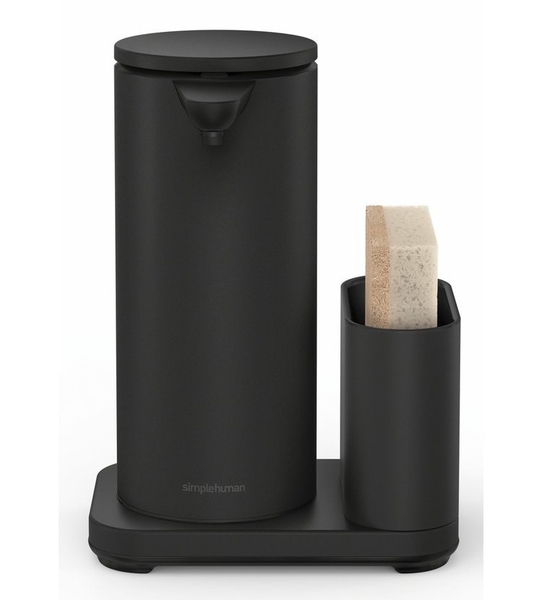 Senzorový dávkovač mydla značky Simplehuman s nerezovým držiakom na hubku s objemom 414 ml zatočí v kuchyni či kúpeľni s baktériami. S týmto prístrojom už nemusíte siahať na kocku mydla či klasický pumpovací typ. Jednoducho len nastavte dlaň a senzor vám podá presnú dávku mydla.
