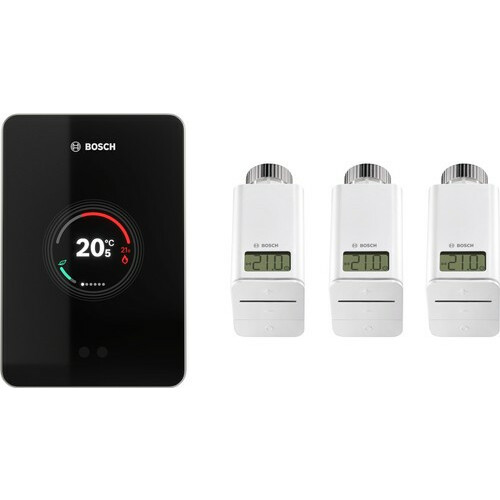 - 3 x Inteligentná termostatická hlavica - bezdrôtová termostatická hlavica pre riadenie teploty v jednotlivých miestnostiach. Možnosť nastavenia časového programu prostredníctvom Bosch Easycontrol