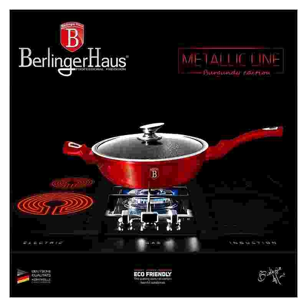 S hlbokou panvicou od značky BerlingerHaus si v kuchyni môžete trúfnuť na mnoho kuchárskych experimentov. Panvica s mramorovým povrchom a ergonomickou rukoväťou v atraktívnom dizajne Burgundy Metallic Line. 3vrstvový povrch s mramorovým dizajnom charakteristický svojou dokonalou nepriľnavostí, pripravované potraviny sa nepripaľujú a vďaka tomu sa panvica veľmi jednoducho čistí.