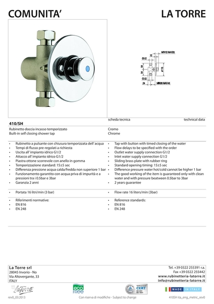 <p class="MsoNormal" style="margin-bottom: .0001pt; line-height: normal;"><span style="font-size: 10.5pt; font-family: 'Verdana',sans-serif; mso-fareast-font-family: 'Times New Roman'; mso-bidi-font-family: Calibri; color: black; mso-fareast-language: SK;">Tlačný sprchový ventil pod omietku.<br />Okrúhly kryt s gumovým krúžkom.<br />Povrchová úprava nadomietkovej časti ventilu: chróm.<br />Pevne nastavený časový interval: 15±5 s.<br />Prietok meraný pri tlaku 3 barov: 16 l/min.<br />Minimálny tlak vody: 0,5 baru.<br />Maximálny tlak vody: 3 bary.<br />Rozdiel tlaku teplej a studenej vody nemôže byť väčší ako 1 bar.<br />Vstup/výstup vody: G 1/2".<br />V súlade s STN EN 816 a STN EN 248.</span></p>