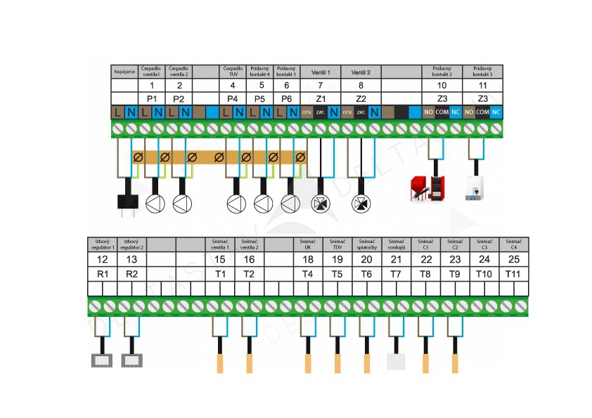 - ovládanie 2x servopohon, 2x čerpadlo a TÚV