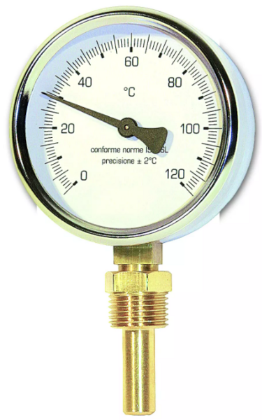 Teplomer radiálny - 0 °C až +120 °C; spodné napojenie 1/2"M; D 80; L 100mm