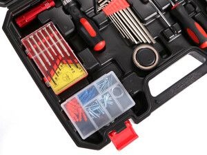 Chcete mať doma kvalitný set náradia pre strýka Príhodu? Zaobstarajte si praktickú sadu SIXTOL HOME 110, ktorú využijete doma aj v dielni. V štýlovom plastovom kufri nájdete 110 kusov, vrátane elektrikárskeho náradia, bitov a hlavíc alebo spojovacieho materiálu. Kufor s držadlom ľahko prenesiete, sada je teda ideálna na cesty. K dostaniu v modernom červeno-čiernom dizajne.
