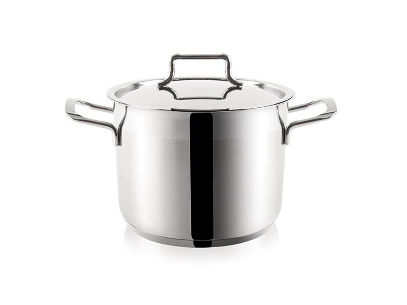 Hrniec s nerezovou pokrievkou. Nerezové hrnce predstavujú vďaka používaným technológiám a kvalitným materiálom výrobok vhodný pre každú modernú domácnosť a sú ideálnou cestou ku zdravej výžive, diétne, ekonomické a estetické príprave pokrmov. Ponúkané nádoby sú vyrobené z vysoko kvalitnej nehrdzavejúcej ocele 18/10. Naakumulovaná energia odovzdáva teplo ďalej do nádoby - tepelný zdroj vypíname v predstihu. Riad možno používať na všetky typy spotrebičov aj do rúry. Vhodné aj do umývačky riadu. - varenie bez tuku, bez straty vitamínov a minerálov obsiahnutých v potravinách-riadu predstavuje dokonale hygienické prostredie pre varenie a uchovanie potravín- zachovanie prirodzenej chuti a hmotnosti upravovaných potravín- vonkajší a vnútorný povrch nádob je vysoko leštený, takže bráni usadzovaniu nečistôt a zaručuje dokonalú údržbu - sendvičové dno s termoakumulačnými vlastnosťami zaručuje rýchle a ekonomické varenie s výraznou úsporou energie- široká ponuka kastrólov, hrncov a rajnice Vám umožňuje vytvoriť si súpravu riadu podľa vlastných predstáv