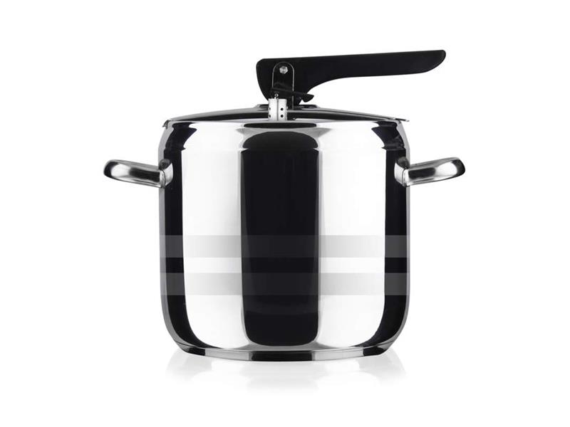 Nerezový tlakový hrniec 7 l s pákovým uzáverom, priemer 20,8 cm, výška 20 cm, nerez 18/0, hrúbka steny 0,6 mm, 2 ventily, silné sendvičové dno. Veko obsahuje dva ventily, hlavný pracovný ventil a pomocný / bezpečnostný ventil. Tlakový hrniec je určený pre rýchlu prípravu pokrmov a možno ho používať na všetky typy varných dosiek vč.indukce.
