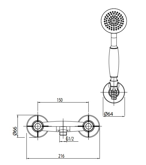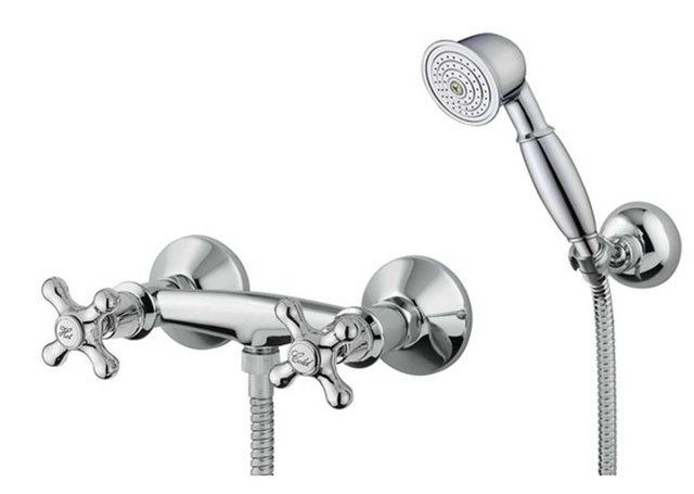 <p>Klasická sprchová stenová vodovodná batéria s príslušenstvom: so sprchovou hadicou, ručnou sprchou a držiakom ručnej sprchy. Batéria je osadená keramickými vrškami so štandardne pólovaným ovládaním. Znamená to, že studená voda sa otvára resp. zatvára opačným smerom ako teplá. Súčasťou balenia sú prípojné kolená s 3/4" závitom.</p>