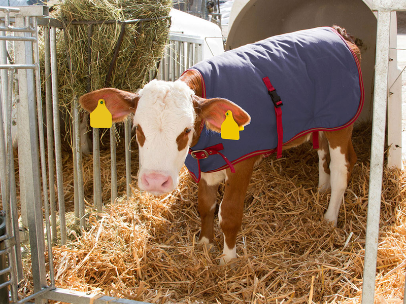 Termodeka pre teľatá, proti prechladnutiu, polyfleecová výplň, anatomické zapínanie okolo brucha a hrudníka, dodatočné suché zipsy, pri prudkých výkyvoch počasia, až do 3-4 týždňov veku, vodoodpudivý materiál do 3000 mm, dĺžka 70 cm.