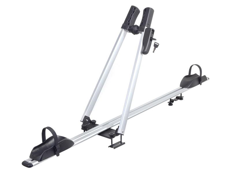Univerzální střešní nosič pro jízdní kolo s jednoduchým systémem upevnění. Upevnění kola do nosiče se provádí pomocí držáku na rám a jednoduchých objímek s fixační sponou, kterou lze upevnit i jednou rukou. Mechanismus je uzamykací a nehrozí tak odcizení kola. Nosič je vhodný pro všechny jízdní kola, nepřesahující hmotnost 15 kg. Nosič je precizně zhotoven z hliníku stříbrné barvy, umožňuje uchycení jak na klasický střešní nosič pomocí U třmenů, tak i na nosiče s T drážkou 20 mm.
