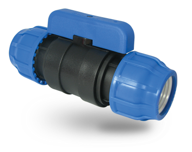 Na spájanie vodovodných tlakových rozvodov z PE rúr Integrovaná spojka s guľovým ventilom 50x50