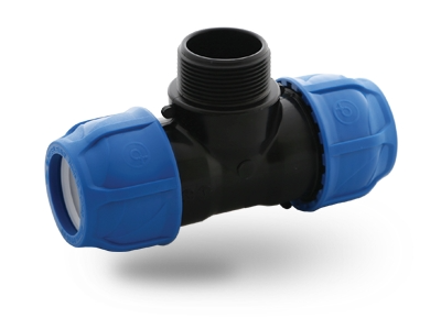 Mechanické tvarovky s možnosťou pripojenia závitovej armatúry PE T-kus s vonkajším závitom 32x5/4"x32