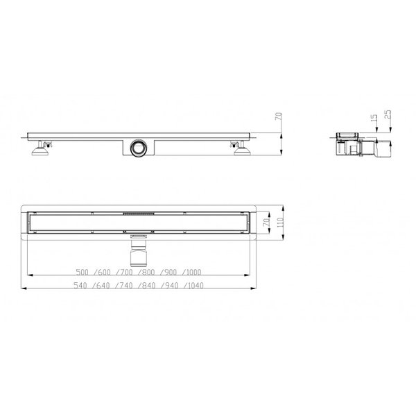 Vyrobené z nehrdzavejúcej ocele AISI 304 s hrúbkou spodného odkvapu 1,2 mm, zakrývacou doskou 1,5 mm