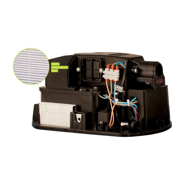 Pripojenie k elektrickej sieti je možné pomocou dodávaného prívodného kábla, alebo pripojením zabudovaného kábla zo steny priamo ku svorkovnici sušiča. Koncentrovaný masívny prúd predohriateho vzduchu na 42 °C s tzv. “JET efektom” okamžite osuší ruky. Automatická obsluha sušiča bezúdržbová prevádzka zaručujú vysoký komfort použitia aj v priestoroch s častým používaním a to pri nízkej spotrebe iba 800W.