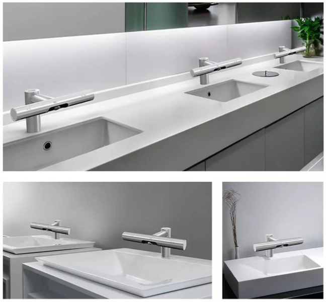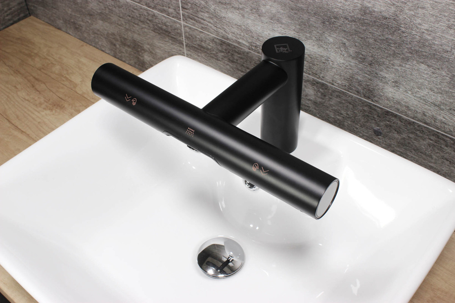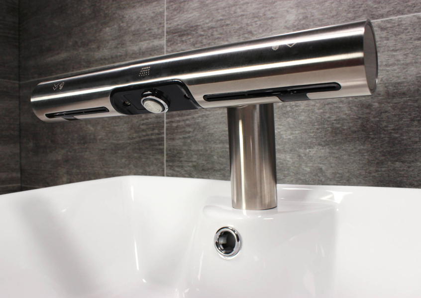 Hygienické umytie a osušenie rúk nebolo nikdy jednoduchšie. Vložením rúk pod vodovodnú batériu začne automaticky tiecť voda s vopred nastavenou teplotou. Uprostred automatickej batérie sa nachádza vyústenie trysky sušiča. Spustenie je tiež bezkontaktné, stačí vsunúť ruky a pohybovať s nimi podobne ako pri umývaní.