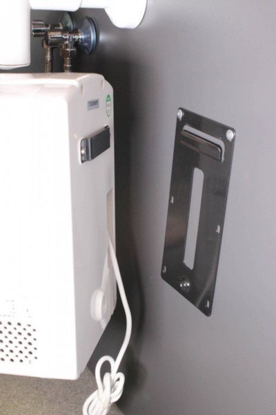 Inštalácia sušiča vo vodovodnej batérii Jet Dryer AIRTAP je možná bez nutnosti zásadných stavebných úprav. Jednotka sa jednoducho postaví pod umývadlo. Ďalšou možnosťou je montáž na závesnú dosku.