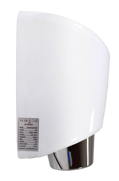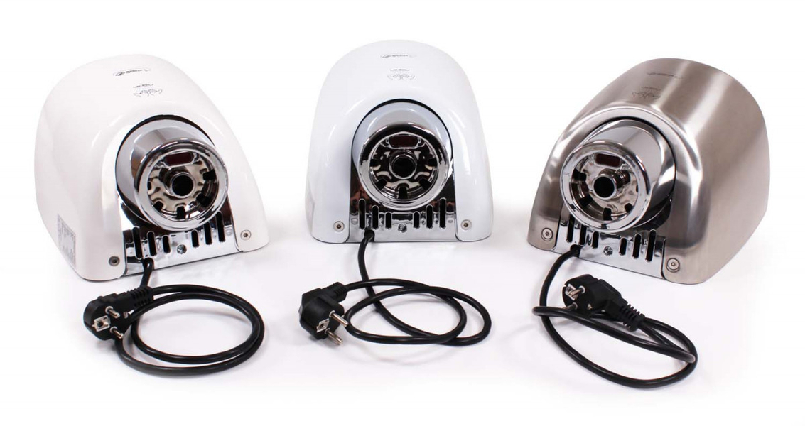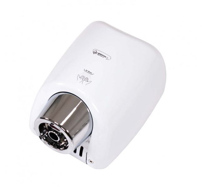 Sušič rúk BOOSTER sa od iných sušičov vyznačuje výraznou pochrómovanou tryskou kruhového tvaru. Vďaka silnému 550 W motoru je vysušenie rúk veľmi rýchle.