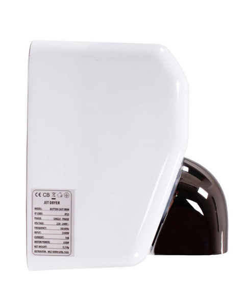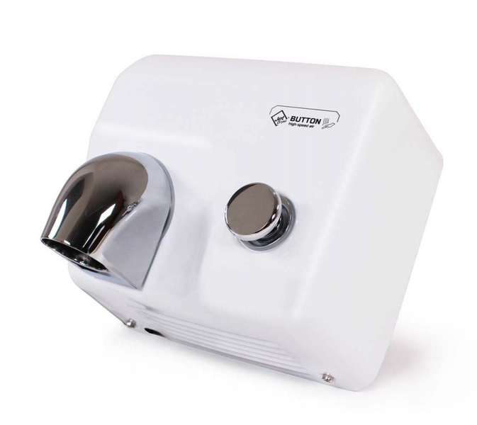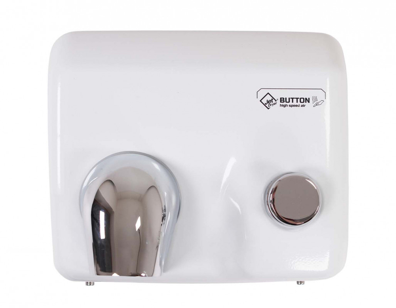 Výkonný sušič rúk v antivandal prevedení Jet Dryer BUTTON vás prekvapí rýchlym vysúšaním a otočnou tryskou. Môžete ho tak používať aj k usušení tváre alebo ako fén na vlasy.