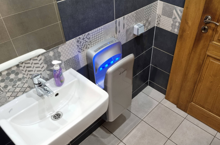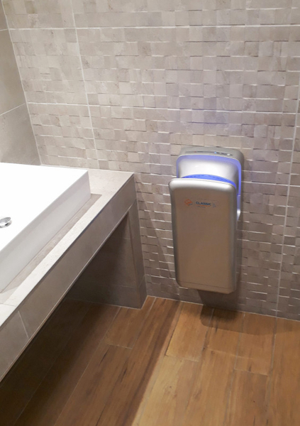 Pre vysušenie rúk v tryskovom sušiči sa nemusíte ničoho dotýkať, prevádzka je úplne bezkontaktná. Vyfukovaný vzduch je filtrovaný pomocou HEPA filtra, na ruke fúka iba čistý vzduch bez baktérií a vírusov. Do sušiča Jet Dryer CLASSIC môžete vložiť aromatický osviežovač vzduchu, ktorý prevonia priestor toaliet pri každom spustení prístroja.