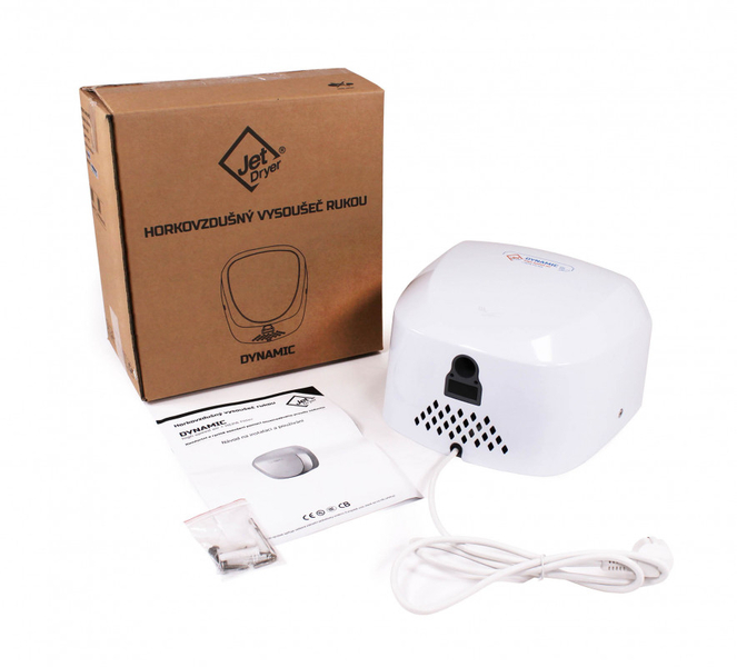 DYNAMIC je jediný sušič rúk z radu Jet Dryer vybavený HEPA filtrom. Silne dimenzovaný motor v priestrannom kovovom kryte predurčuje tento sušič do prevádzok s veľmi frekventovanou prevádzkou. Ohrev vzduchu sa spína automaticky podľa okolitej teploty.