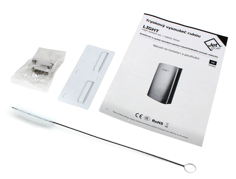 Jet Dryer LIGHT predstavuje elegantné sušenie rúk v ultra malom rozmere. Tryskový sušič je vhodný predovšetkým do umyvární limitovaných priestorom. Sušič rúk LIGHT je vybavený HEPA filtrom. Voda, ktorá sa pri vysúšaní neodparí, je zachytávaná v odkvapovej nádobke.